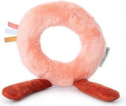 Aktívny reťaz Srnka Stella tvorí mäkké články, ktoré sa prepájajú pomocou stredového magnetického krúžku. V hlavičke srnky je ukrytá hrkálka, jedno uško príjemne šuští a na labke nájdete roztomilého vtáčika – senzorickú nášivku. Druhá labka nesie hviezdičkové hryzátko s výstupkami pre úľavu pri prerezávaní zúbkov.