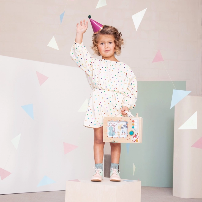 Táto originálna hracia skrinka od Lilliputiens je navrhnutá pre najmenších objaviteľov. Stačí otočiť ovládacím tlačidlom a malý orchester spustí veselú melódiu, počas ktorej sa aktivujú aj ilustrácie. Deti tak prirodzene precvičujú koordináciu oko–ruka, sluch aj zrak.