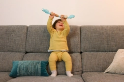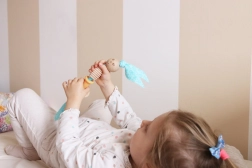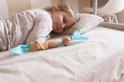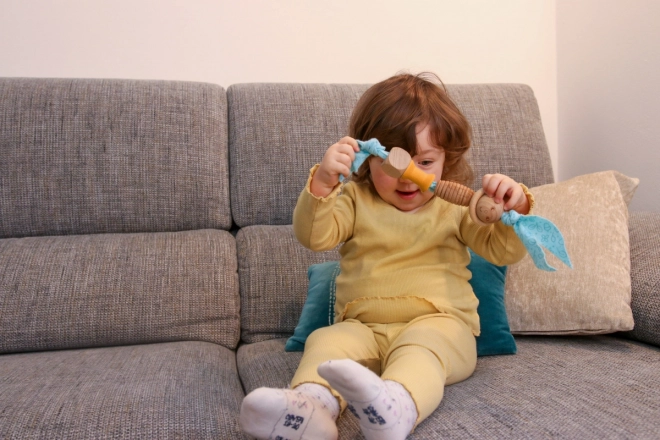 Kombinácia prírodného dreva a mäkkého textilu je príjemná do ruky a odolná na každodenné hranie.