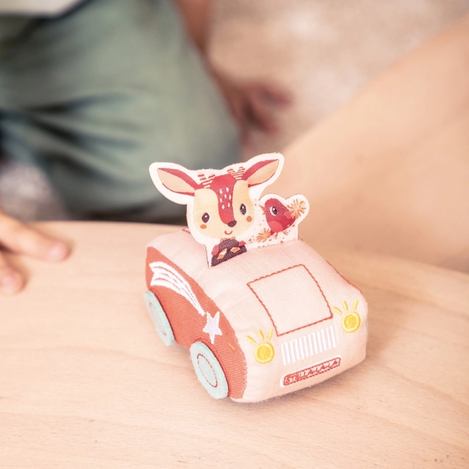Autíčko je navrhnuté tak, aby podporovalo imaginárnu hru a zábavu u detí. Rozmery autíčka sú 9 x 6,5 x 10,5 cm. Vyrobené zo 100% polyesteru, čistí sa len vlhkou handričkou.