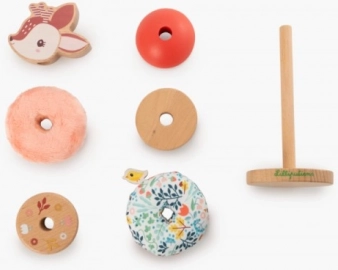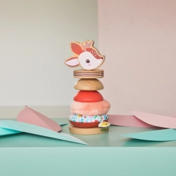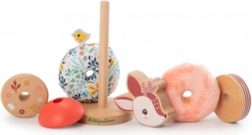 Originálna stohovacia hračka Lilliputiens s motívom jelienka Stella poteší deti od 12 mesiacov: kombinuje drevo a textil, rozvíja jemnú motoriku aj kreativitu a vďaka stabilnému podstavcu sa ľahko skladá. Obsahuje 4 drevené a 2 textilné diely; rozmery 8 × 8 × 18,8 cm. Textilné časti možno prať na 30 °C (jemný cyklus).