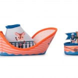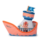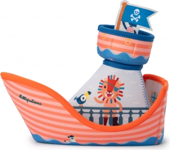 Vydajte sa na fantazijnú plavbu s najmúdrejším levom Jackom a jeho posádkou. Pestrofarebná pirátska loď z mäkkého neoprénu je navrhnutá na pohodlné držanie malými rúčkami a ponúka bezpečnú zábavu vo vani aj pri bazéne. Hornú časť lode s oslíkom Ignácom možno ľahko oddeliť – deti tak získajú jedno väčšie a jedno menšie plavidlo na variabilné hry a rozvoj predstavivosti.