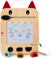 Kúzelná tabuľka vlka Ľudovíta je ideálna kreatívna hračka pre predškolákov. Deti môžu kresliť, pečiatkovať a plniť úlohy z priložených kariet, ktoré rozvíjajú jemnú motoriku, trpezlivosť a zmyslové vnímanie. Vďaka praktickému úchytu sa dobre prenáša a drevená ceruzka pripevnená šnúrkou sa nestratí.