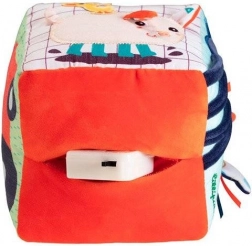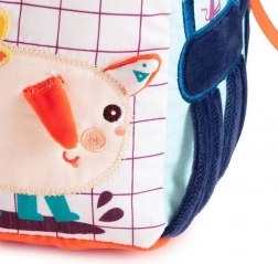 Vďaka rôznym textúram, vreckám a detailom (ťahanie, vkladanie, vyťahovanie) hračka podporuje jemnú motoriku a koordináciu oko–ruka, zároveň stimuluje zrak, sluch aj hmat. Krúžok–hryzátko na pružnej šnúrke prináša úľavu pri zúbkovaní a ľahko sa drží aj malými rúčkami.