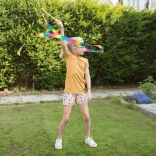 Deti si môžu s tanečnou stuhou a paličkou vytvoriť vlastné pohybové vystúpenia doma alebo na záhrade. Dúha farieb stuhy v kombinácii s hudbou inšpiruje k radosti z tanca a pohybu. Výrobok je vhodný pre deti od 3 rokov, a to ako pre dievčatá, tak aj pre chlapcov, ktorí si chcú zlepšiť koordináciu oko-ruka a motorické zručnosti.