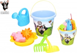Objavte čaro hry v piesku s obľúbeným motívom KRTKO. Praktická sada v modrej farbe obsahuje všetko, čo deti potrebujú na hodiny tvorivej zábavy – od vedierka s objemom 3,5 l cez sitko až po formičky a kanvičku. Vďaka pevnému plastu je set ľahký, bezpečný a odolný voči bežnému opotrebovaniu.