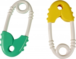 Zábavná detská hrkálka a hryzátko v tvare špendlíka pre bábätká podporuje jemnú motoriku a prináša úľavu pri prerezávaní zúbkov. Vďaka textúrovanému povrchu, bezpečným zaobleným hranám a ľahkému úchopu si s ním deti ľahko poradia. Farebný mix dodávame podľa aktuálnej skladovej dostupnosti.