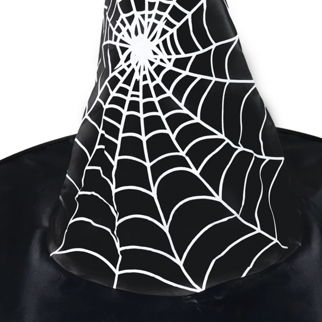 Štýlový detský klobúk pre malých čarodejov a čarodejnice s výraznou bielou pavučinou na čiernom podklade. Ideálne na Halloween, karneval aj tematické oslavy – ľahký, pohodlný a neprehliadnuteľný doplnok kostýmu.