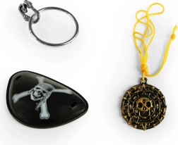 - Kompletné balenie: šabľa, očná klapka, medailón na šnúrke a náušnica.