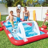 Nafukovacie vodné hracie centrum INTEX Action Sport premení vašu záhradu na zábavný športový park. Súčasťou sú prvky pre volejbal, futbal aj baseball, takže sa deti môžu jednoducho striedať v aktivitách a trénovať koordináciu aj motoriku. Vďaka mäkkým nafukovacím stenám a stabilnej konštrukcii je hranie bezpečné a pohodlné.