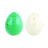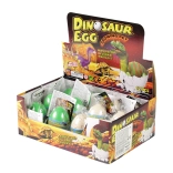 Každé vajce má unikátnu zelenú farbu s čiernymi škvrnami a skrýva rôznofarebného dinosaura.