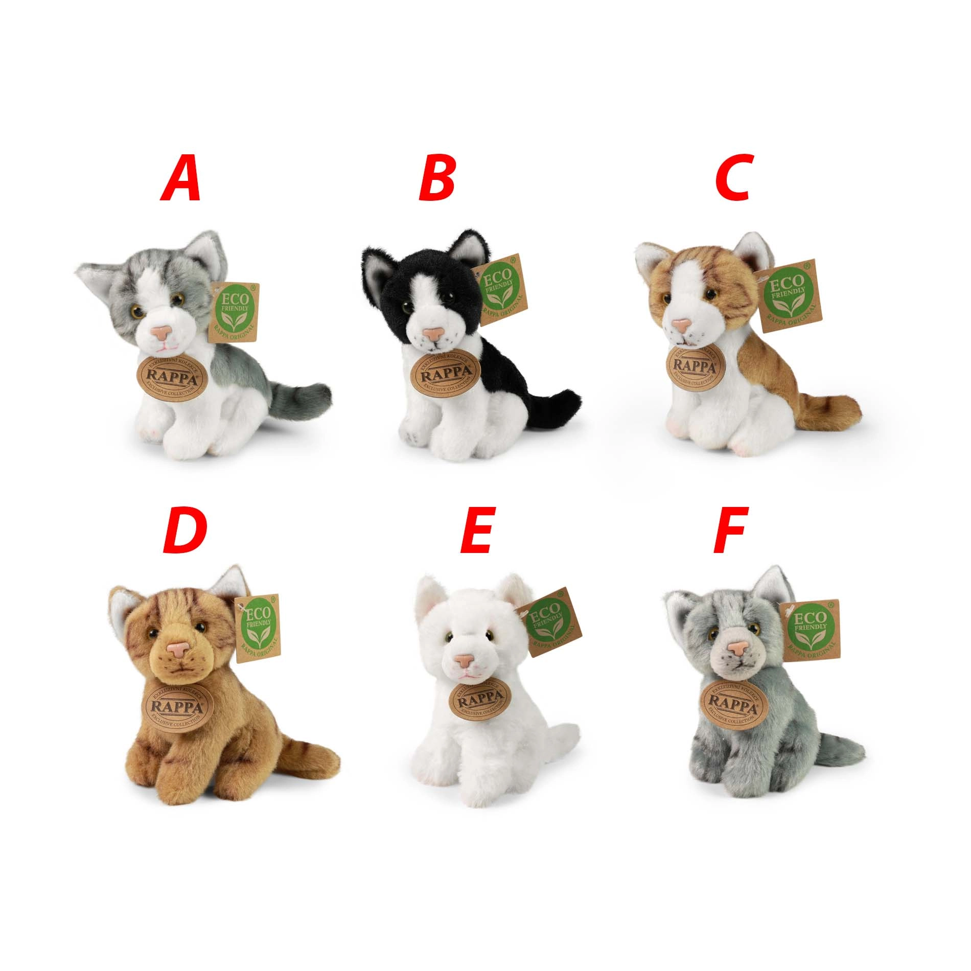 Výplň tejto hračky je vyrobená z recyklovaných PET fliaš, ktoré sú úplne bezpečné a na dotyk na nerozoznanie od štandardnej výplne. Tým podporujete udržateľnú voľbu bez kompromisov na kvalite či jemnosti. K dispozícii je šesť atraktívnych variantov – od bieleho, sivého až po tigrované mačiatko.