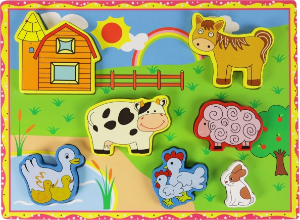 Táto drevená 3D skladačka je ideálna pre najmenšie deti, ktoré túžia objavovať svet okolo seba. S motívmi zvieratiek z farmy si vaše dieťa užije veľa zábavy a zároveň rozvíja svoje motorické schopnosti.