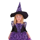 Súčasťou kostýmu je zladený klobúk zdobený rovnakým vzorom ako šaty, ktorý dodáva kostýmu autentický vzhľad čarodejnice.