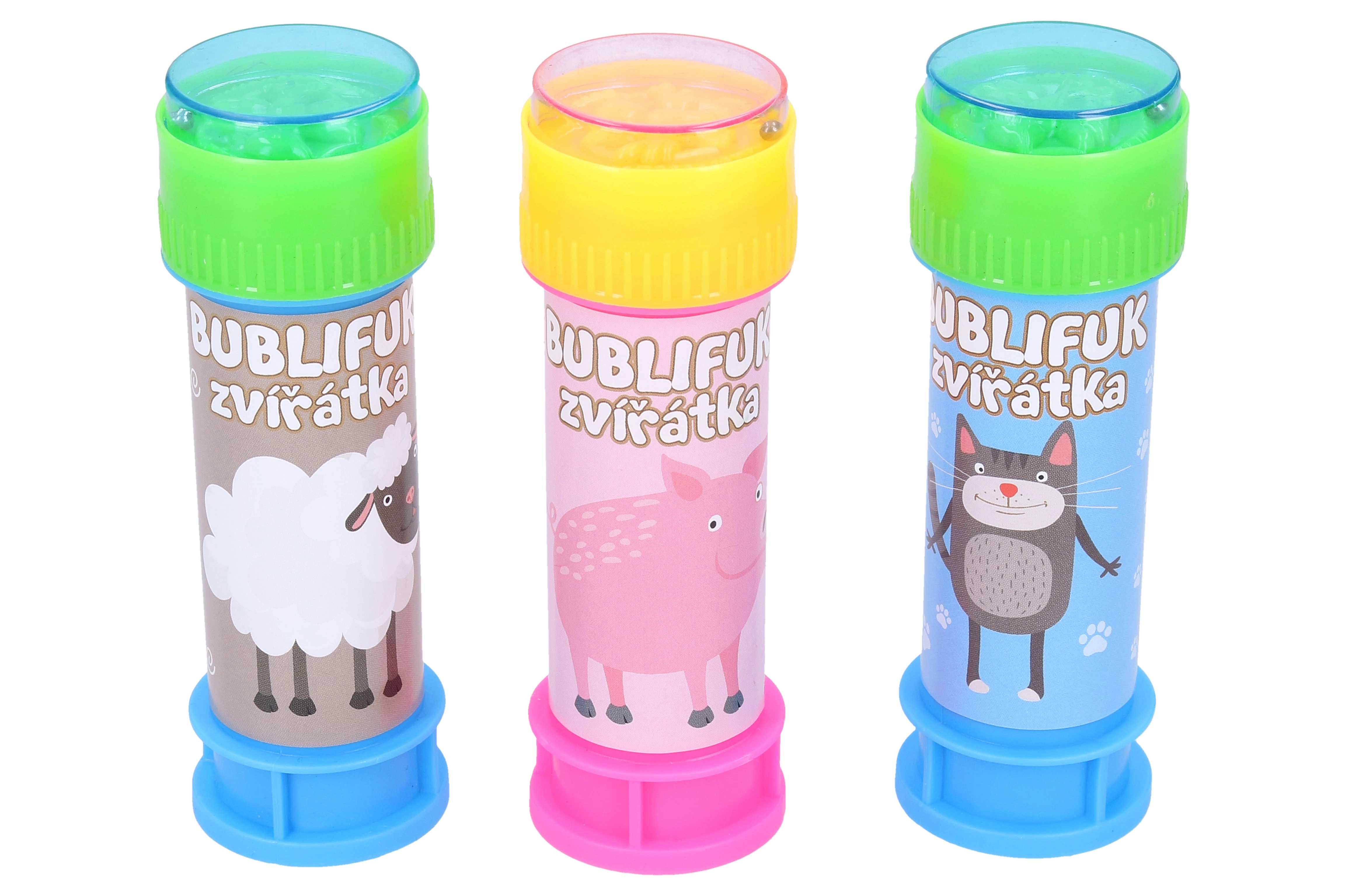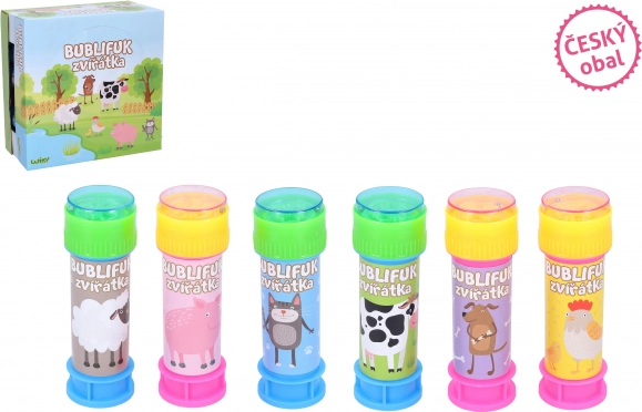 Užite si zábavu s bublifukom v tvare zvieratka. Obsahuje 50 ml bublifukovej tekutiny a je dostupný v šiestich rôznych variantoch, vrátane mačky, kravy, sliepky, psa, prasaťa a ovce.