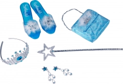Premeňte svoju dcéru na princeznú Zimného Kráľovstva s touto úžasnou sadou! Obsahuje všetko, čo malá princezná potrebuje: črievičky, kabelku, čelenku, korunku, náušnice a paličku.