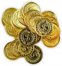 Doprajte deťom aj dospelým porciu hernej zábavy so sadou zlatých mincí, ktoré vyzerajú efektne a vďaka plastovému prevedeniu sú ľahké, bezpečné a odolné. Lesklý povrch a reliéfny motív dolára dodajú vašim hrám aj dekoráciám atraktívny vzhľad.