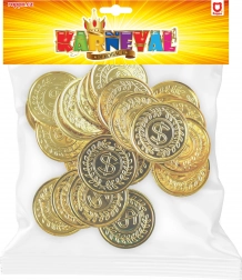 Zábavná sada plastových mincí v zlatej farbe na hry, súťaže a tematické párty. Balenie obsahuje cca 24 kusov s priemerom 3,4 cm. Ideálne ako žetóny do stolových hier, rekvizity na detské oslavy alebo vyučovacie pomôcky na počítanie a odmeny.