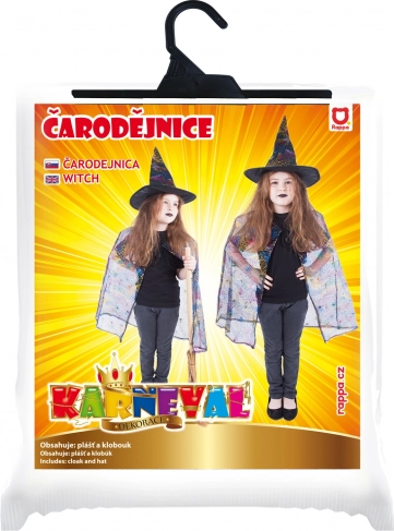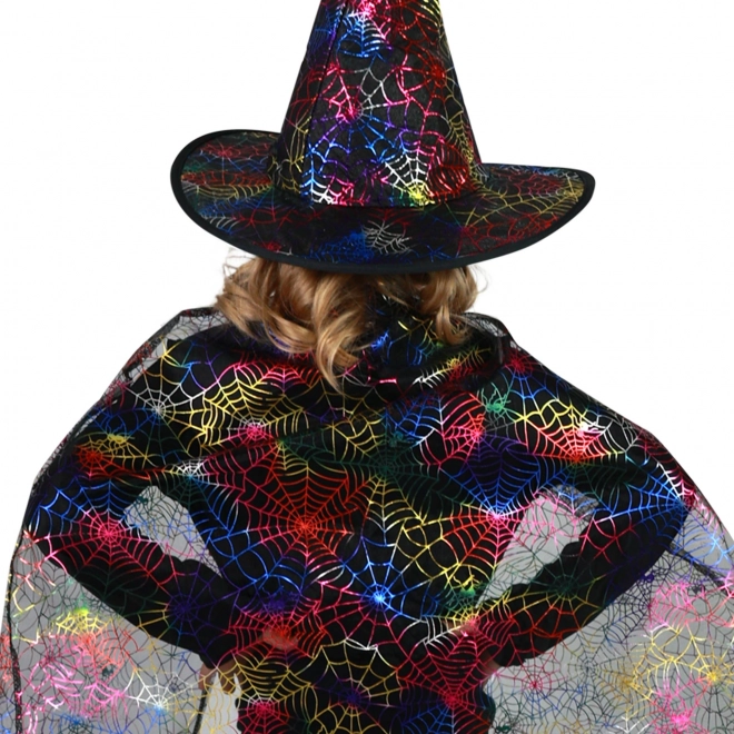 Detský čarodejnícky kostým s pavučinovým plášťom a klobúkom