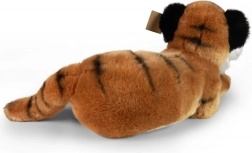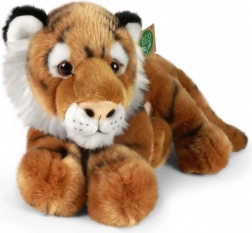 Tento ležiaci plyšový tiger prináša kombináciu jemnosti, kvality a ohľaduplnosti k prírode. Precízne ručné spracovanie a detailné pruhy pôsobia realisticky, takže sa stane obľúbeným spoločníkom aj krásnou dekoráciou. Vďaka mäkkej a nadýchanej výplni z recyklovaných PET je hračka nielen príjemná na dotyk, ale aj šetrná k planéte.