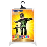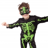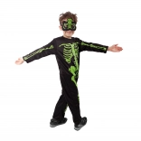 Štýlový detský kostým kostlivca s výraznými neónovo zelenými kosťami na čiernom podklade. Ideálny na Halloween, karneval aj tematické párty. Súčasťou je kombinéza a maska pre kompletný strašidelný vzhľad. Pohodlný materiál, ľahké obliekanie a efektná neónová potlač zaistia veľa zábavy a pozornosti.