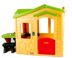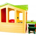 Detský domček s patio LITTLE TIKES je ideálne centrum fantazijnej hry na záhrade aj v herni. Deti si užijú realistické varenie v interiérovej kuchynke s „horákmi“ a klapkajúcimi gombíkmi, zatiaľ čo vonku je pripravené posedenie pri stolíku s dvomi stoličkami. Praktické okno umožňuje servírovať dobroty priamo na patio, čo podporuje sociálnu hru a komunikáciu.