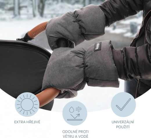 Rukavice sú kompatibilné s väčšinou kočíkov – od modelov so spojenou rukoväťou až po golfové kočíky. Vďaka univerzálnemu prevedeniu sú ideálnou voľbou na každodenné zimné prechádzky.