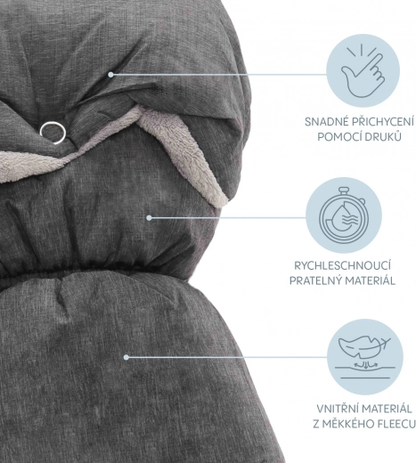 Univerzálne zimné rukavice na kočík udržia vaše ruky v teple a suchu aj v mrazivom počasí. Vďaka zapínaniu na cvoky ich nasadíte behom chvíľky. Hodia sa na kočíky so spojenou rukoväťou aj na golfové kočíky a ich materiál je vetruodolný a vodoodolný. Vo vnútri je mäkký flís pre extra komfort a výbornú hrejivosť.