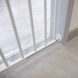 Robustné kovové prevedenie v neutrálnej bielej farbe sa hodí do každého interiéru. Zábrana je určená pre deti do 24 mesiacov a spĺňa bezpečnostnú normu EN 1930:2011. Povrch sa ľahko čistí, takže údržba je otázkou chvíľky.