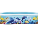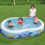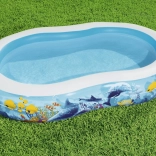 Užite si leto s priestranným nafukovacím bazénom BESTWAY s motívom oceánu. Vďaka oválnemu tvaru, širokým stenám a stabilnej komorovej konštrukcii je ideálny na bezpečné vodné radovánky detí. Vyrobený z odolného vinylu, ponúka rýchle vypustenie a jednoduché skladovanie.