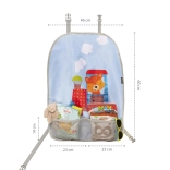 Vďaka širokému vrecku ľahko uložíte hračky, knihy, fľaštičky, vlhčené obrúsky či drobné občerstvenie. Odolná tkanina zabezpečuje dlhú životnosť a jednoduchú údržbu – stačí utrieť vlhkou handričkou.