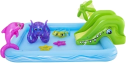 Premeňte letné dni na dobrodružstvo. Toto farebné vodné ihrisko s morskými motívmi poteší deti od 2 rokov – čaká ich šmýkačka do bazénika, striekajúca fontána v tvare stromčeka po pripojení záhradnej hadice a sada nafukovacích zvieratiek, ktoré podporujú fantáziu aj pohyb.