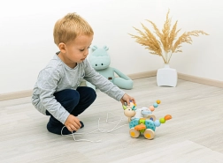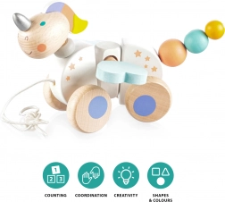 Drevená ťahacia hračka Jednorožec je skvelým parťákom pre deti pri ich prvých krôčikoch. Vďaka jednoduchému mechanizmu pri chôdzi trepocú krídla a chvost jednorožca, čo deti zabaví na dlhé hodiny.