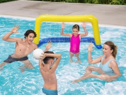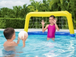 Nafukovacia bránka BESTWAY prináša do každého bazéna porciu športovej zábavy. Ľahké a bezpečné prevedenie z kvalitného vinylu sa postará o dlhú životnosť, zatiaľ čo nylonová sieť spoľahlivo zachytí každý zásah. Vďaka bezpečnostným ventilom je bránka rýchlo pripravená na hru a rovnako rýchlo ju zase upracete.