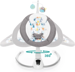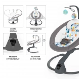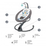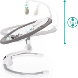 Intuitívny dotykový panel a priložený diaľkový ovládač umožňujú pohodlne nastaviť intenzitu hojdania (5 úrovní), dlžku hojdania (8/15/30 min) aj hlasitosť melódií. Automatické spustenie hojdania pri detekcii pohybu dieťaťa zabezpečuje kľud aj v náročnejších chvíľach. Bohaté polstrovanie, 5-bodový bezpečnostný pás a hrazdička s dvoma odnímateľnými plyšovými hračkami sa postarajú o bezpečie a radosť.