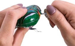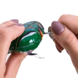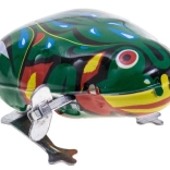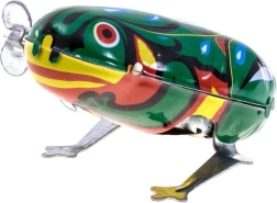 Táto roztomilá hračková žabka je vyrobená z kovu v krásnej zelenej farbe a je poháňaná pružinovým mechanizmom, ktorý sa naťahuje kľúčikom. Žabka prináša úsmev na tvár všetkým generáciám. Vďaka malým rozmerom sa ľahko zmestí do detskej ruky a je perfektná pre vtipné momenty, keď je napríklad ukrytá v kabelke. Uistite sa, že ju máte ako talizman pre šťastie!