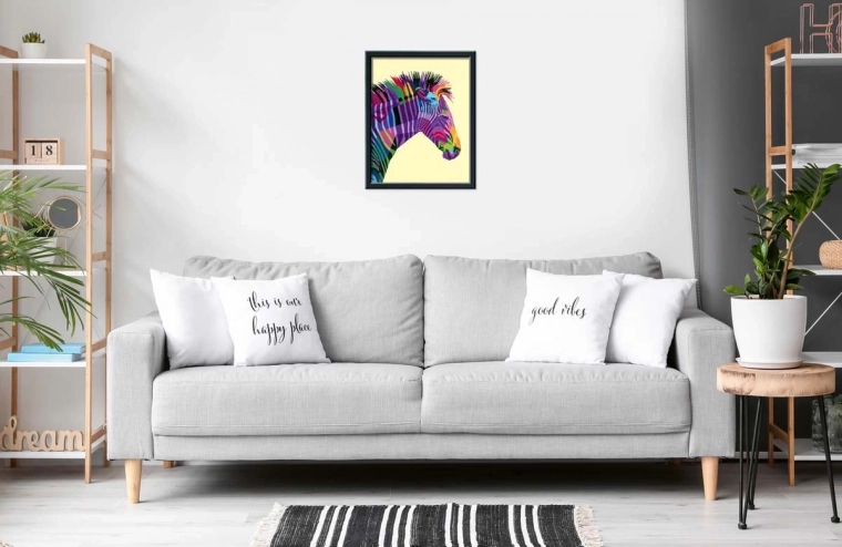 - Motív: štýlová zebra v modernom dizajne