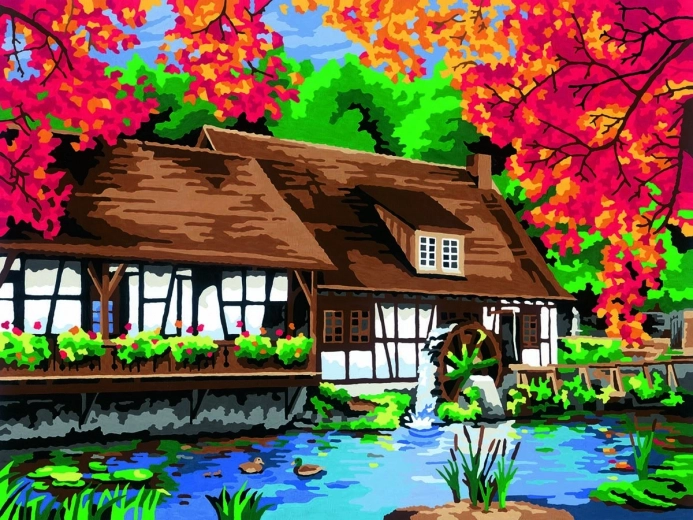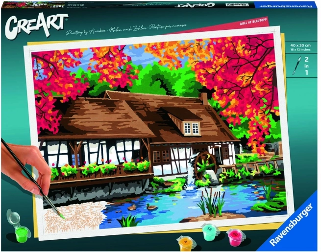Táto prémiová sada CreArt s motívom malebného mlyna umožňuje krok za krokom vytvoriť pôsobivý obraz. Farebne označené plochy a číselné vodiče vedú k istému výsledku, takže si maľovanie užijú začiatočníci aj pokročilí. Hotové dielo sa skvele hodí na zarámovanie a vystavenie.