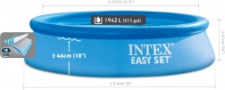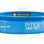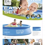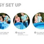 Klasika medzi nadzemnými bazénmi. Intex Easy Set sa vyznačuje rýchlou a snadnou montážou vďaka nafukovaciemu hornému lemu. Stačí ho nafúknuť a stúpajúci stĺp vody bazén sám postaví.