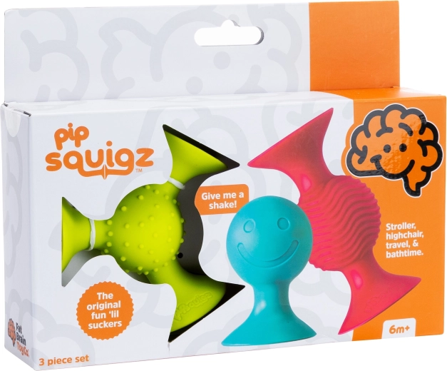 Sada pipSquigz (3 ks) prináša deťom nekonečné možnosti hry doma aj na cestách. Každý diel je vyrobený z kvalitného, mäkkého silikónu a je vybavený prísavkami, ktoré spoľahlivo držia na hladkých povrchoch – na jedálenskej stoličke, vo vani aj na okne. Chrastiace a textúrované prvky lákajú k uchopeniu a žmýkaniu, čím prirodzene rozvíjajú motoriku a zmysly.