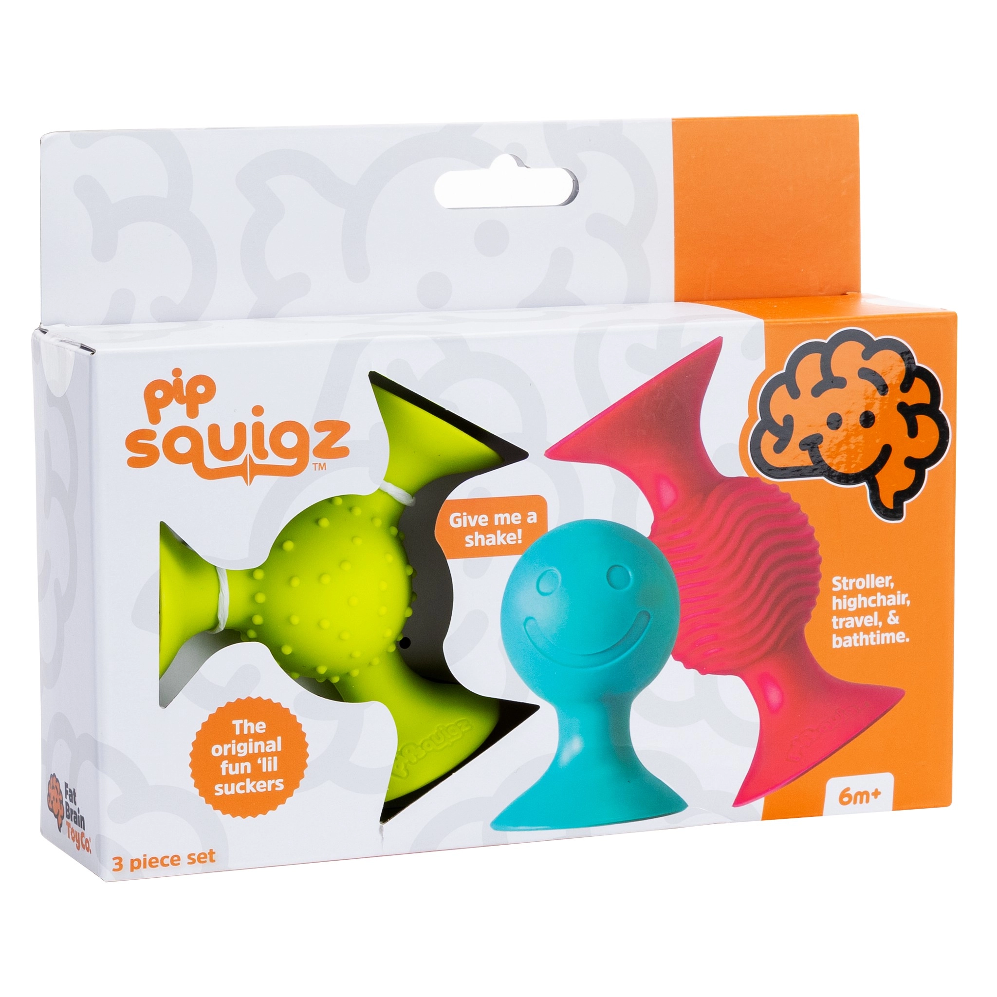 Objavte zábavné chrastítka pipSquigz pre najmenších – mäkké silikónové hračky s prísavkami, ktoré sa ľahko lepia na hladké povrchy, chrastia a lákajú k objavovaniu. Vďaka výrazným farbám, rozmanitým textúram a bezpečnému materiálu podporujú zmyslovú stimuláciu, jemnú aj hrubú motoriku a koordináciu oko–ruka už od narodenia.