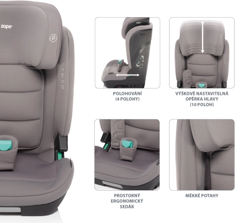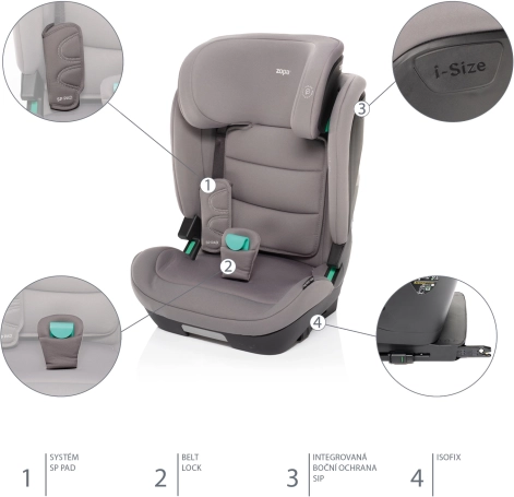 Chipolino podsedák Wing i-Size 125–150 cm s Isofixom – Sivá