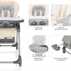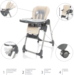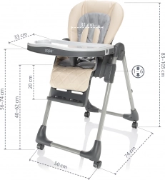 Stolička Monti 2 sa vďaka 6 polohám nastavenia výšky prispôsobí každému stolu. Vďaka 3 polohám operadla chrbta, 3 polohám opierky na nôžky a 3 polohám vzdialenosti dieťaťa od pultíka sa Monti 2 stane skvelým spoločníkom ako pri stolovaní, tak aj na odpočinok. Operadlo chrbta sa dá nastaviť až takmer do ľahu, čo z multifunkčnej Monti 2 robí ležadlo vhodné už od narodenia bábätka. Navyše spĺňa bezpečnostné normy EN 14988 a EN 12790, a to z nej robí úplne bezpečného spoločníka pre ničím nerušené stolovanie.