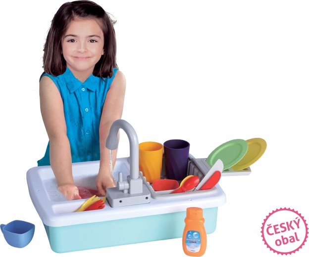Zábavná detská sada do kuchynky s reálnou funkciou tečúcej vody poteší malých pomocníkov. Plastový kuchynský drez s bohatou výbavou podporuje fantáziu, rolové hry a rozvoj jemnej motoriky. Ideálny darček pre deti od 3 rokov.