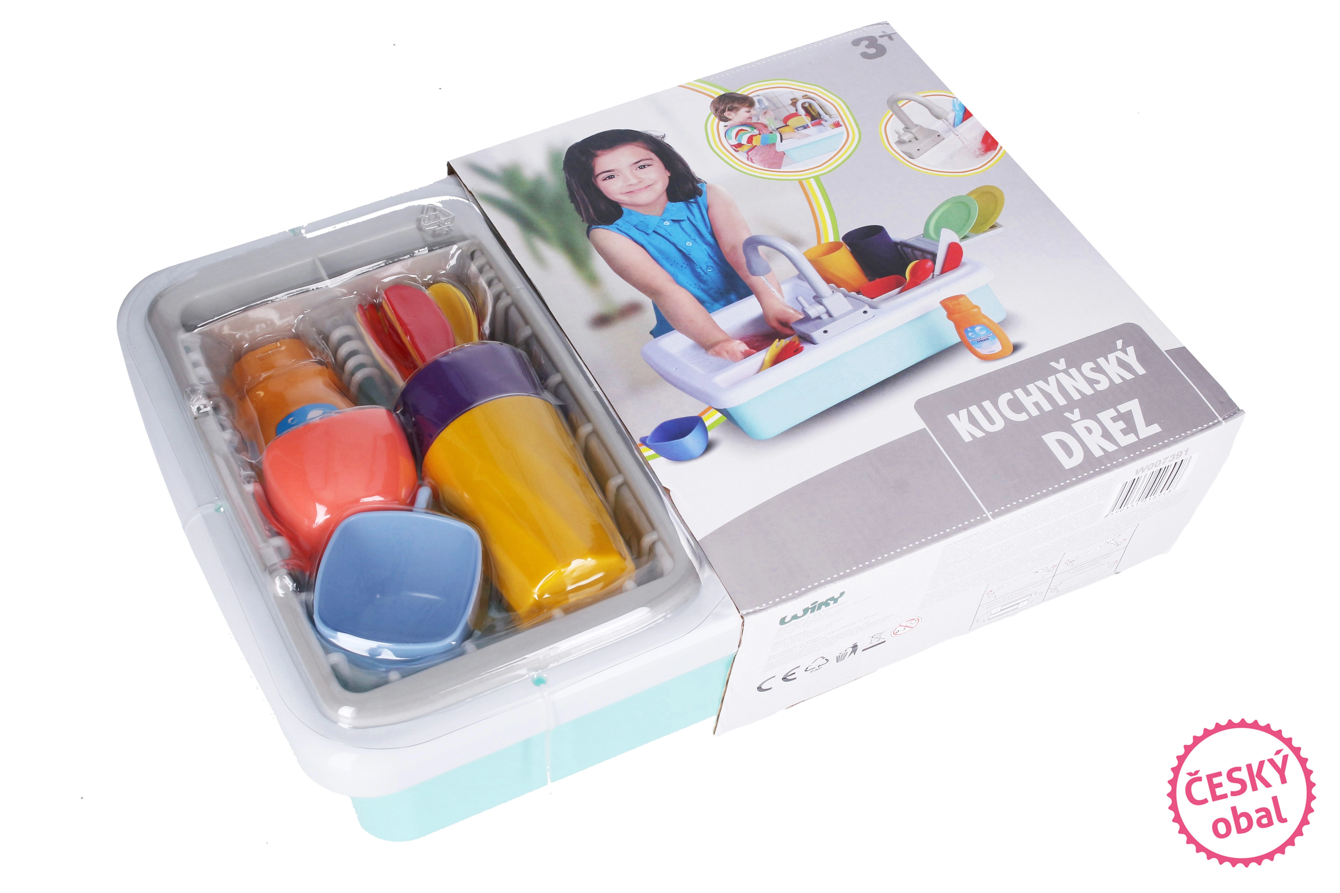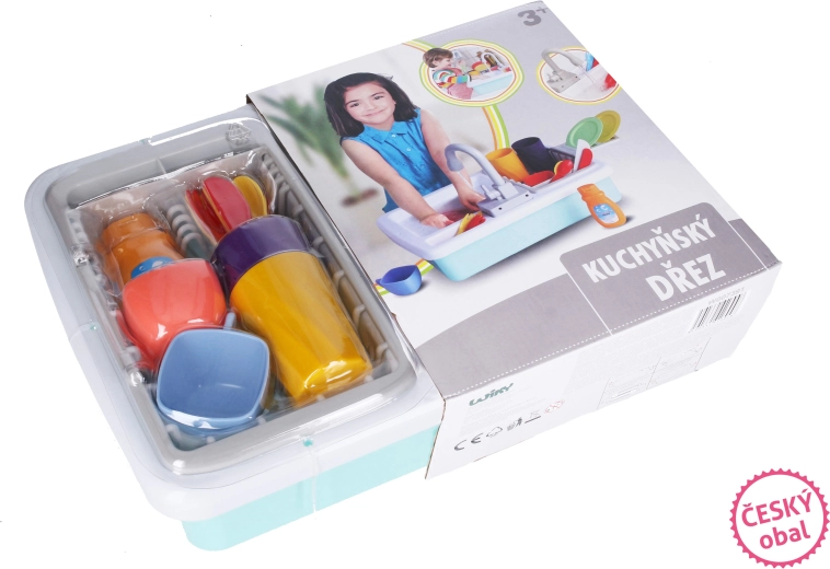 Súčasťou balenia je praktická kuchynská výbava, s ktorou môžu deti ihneď začať: hrnčeky, tanieriky, šálky, príbory a tiež jar na riad pre ešte realistickejšiu hru. Drez je skvelým doplnkom do každej detskej kuchynky a zabaví na dlhé hodiny.