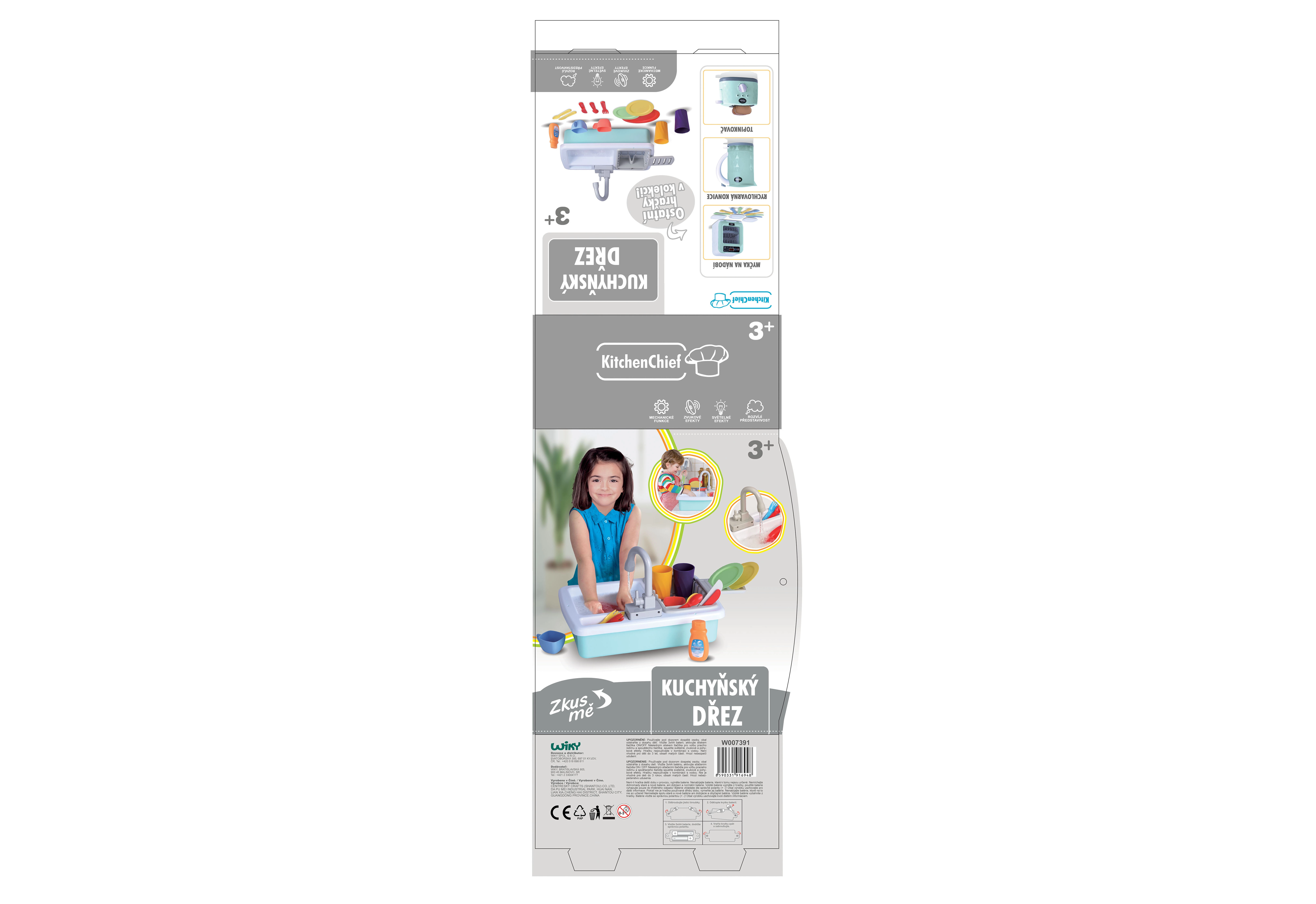 Tento plastový kuchynský drez prináša deťom realistický zážitok z varenia a upratovania. Vďaka funkcii tečúcej vody si malí kuchári vyskúšajú, ako sa umýva riad, a zároveň si precvičia koordináciu rúk a zodpovednosť pri domácich prácach. Sada je navrhnutá pre bezpečné a dlhé hranie.