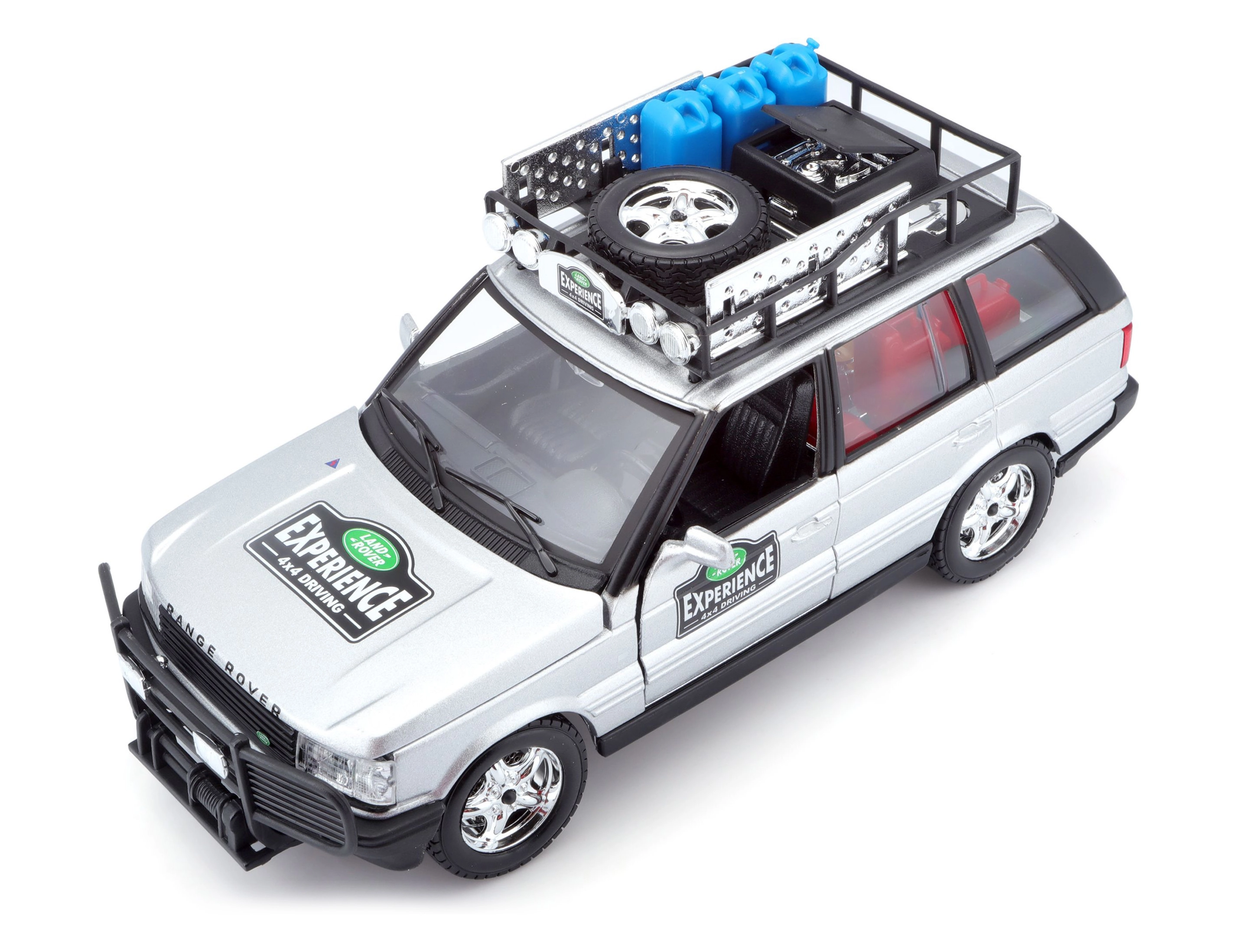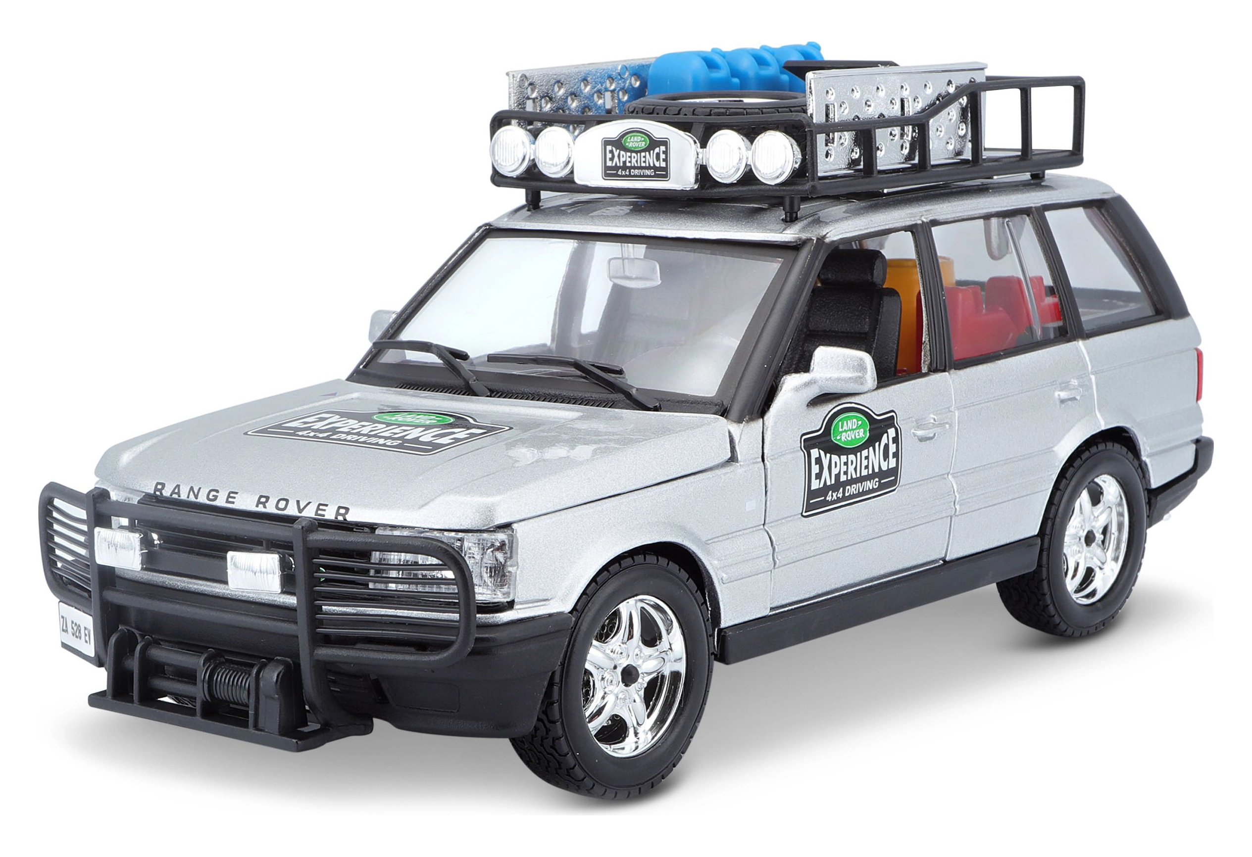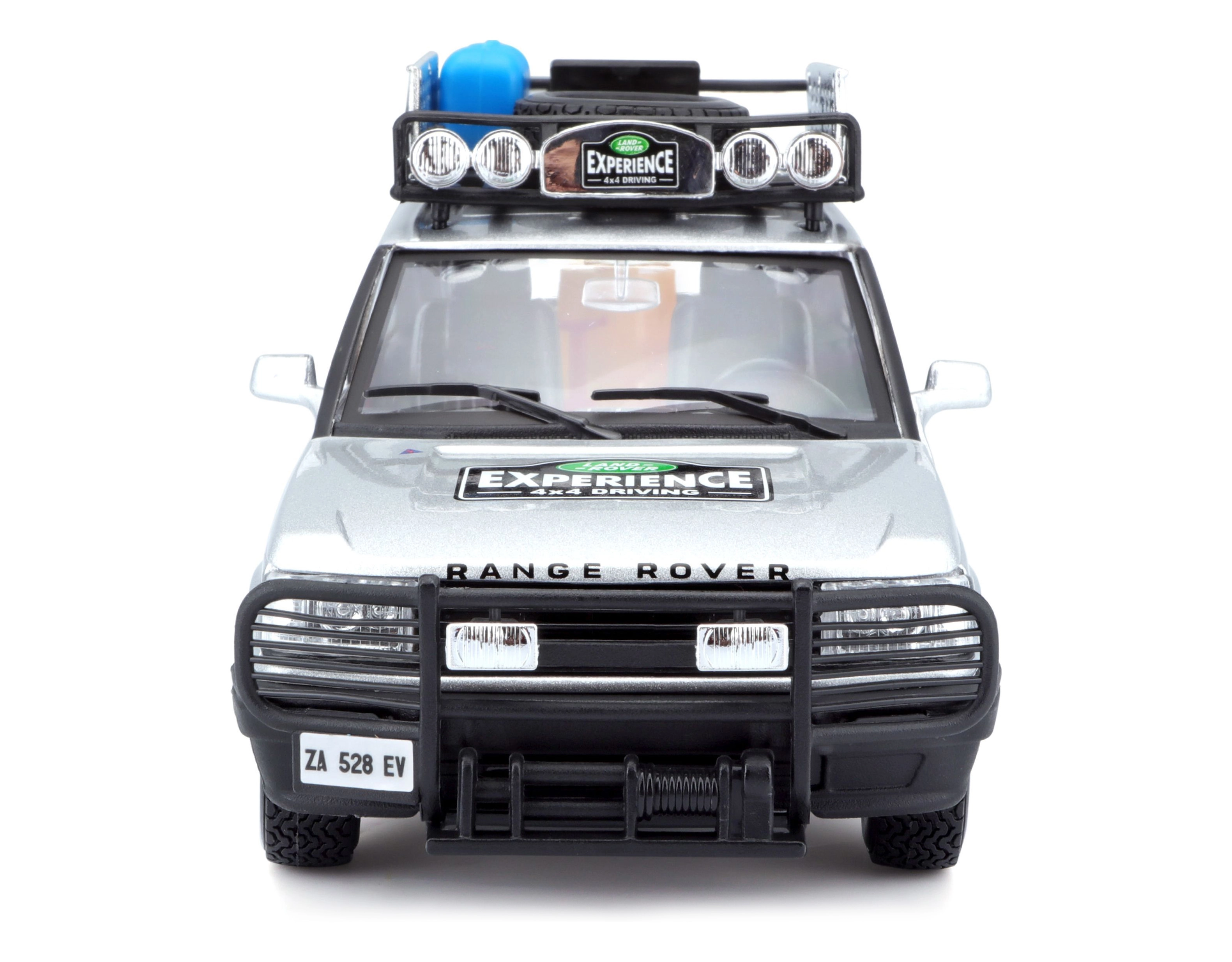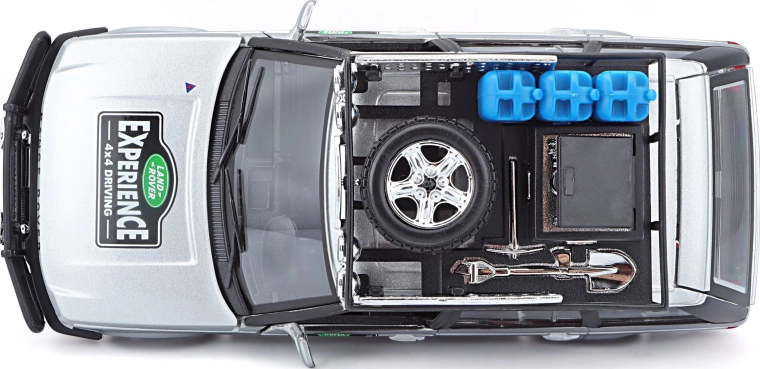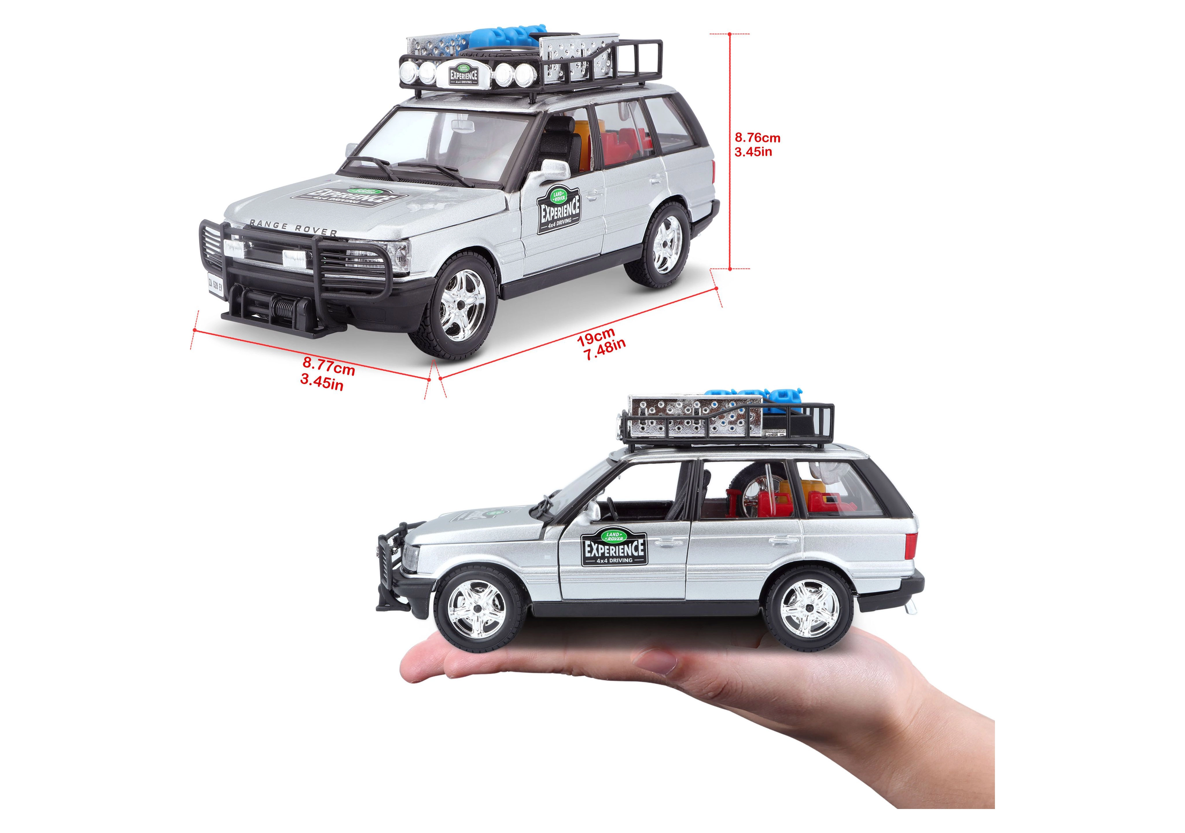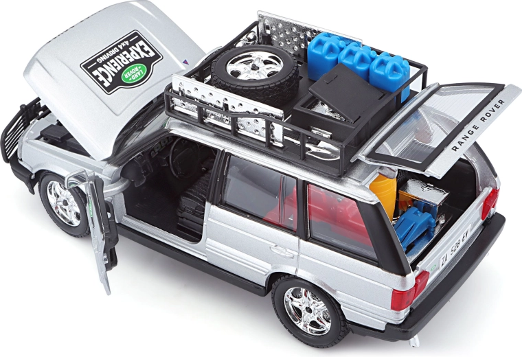 Tento precízne spracovaný model vozidla RANGE ROVER v mierke 1:24 prináša autentické detaily, ktoré potešia každého fanúšika terénnych áut. Strieborná karoséria doplnená o strešný nosič s príslušenstvom, predný ochranný rám a realistické polepy vytvára atraktívny vzhľad na hranie aj vystavenie.