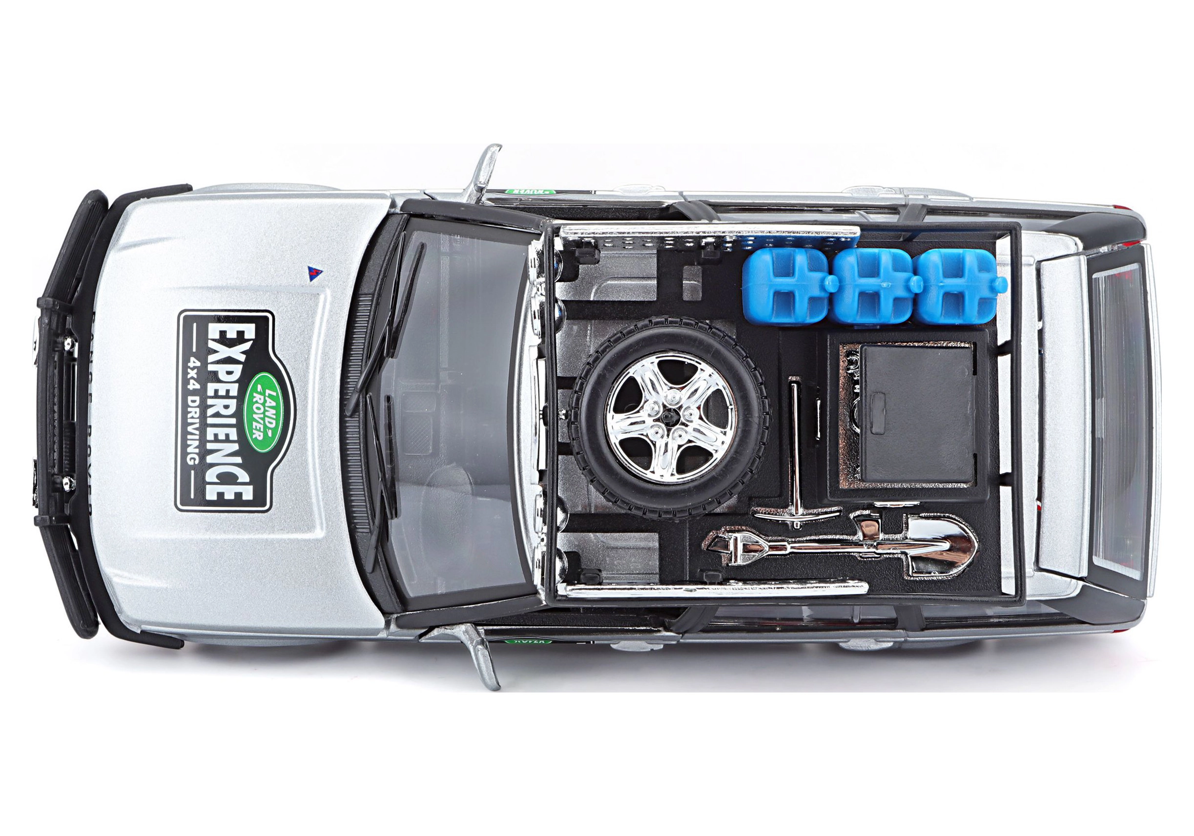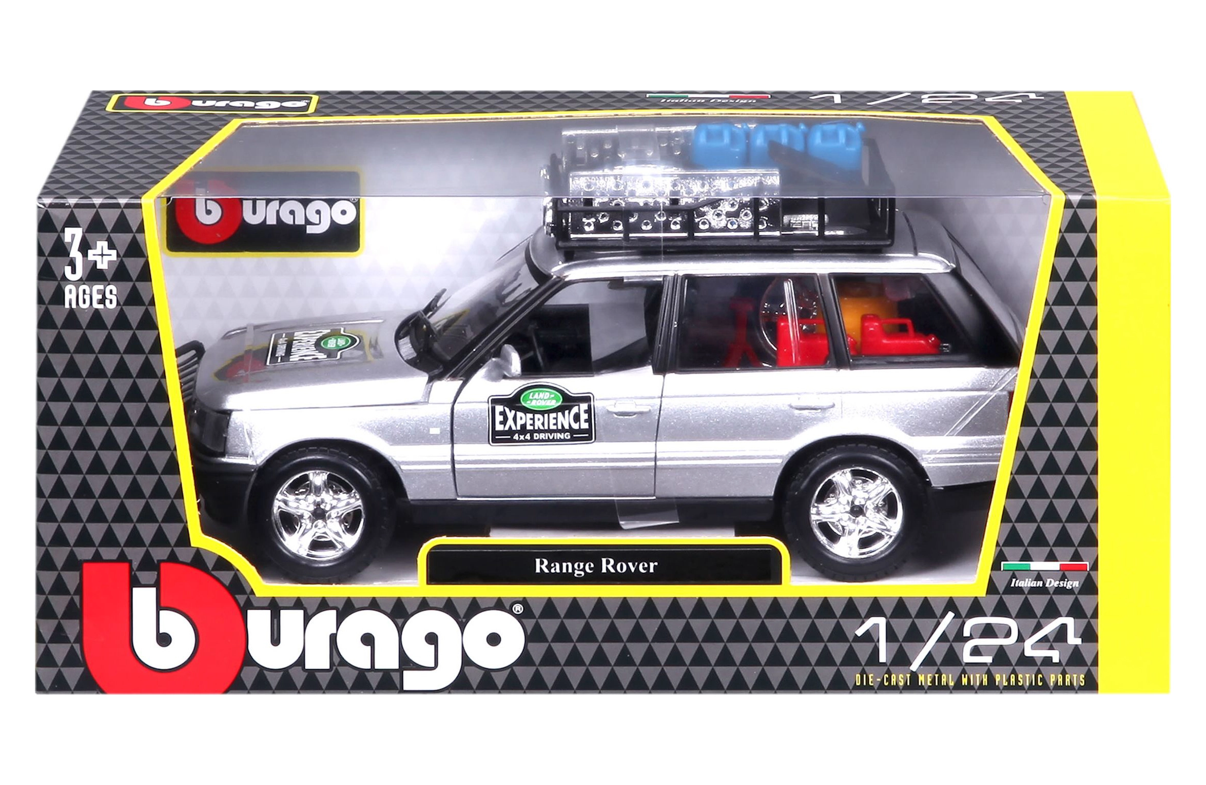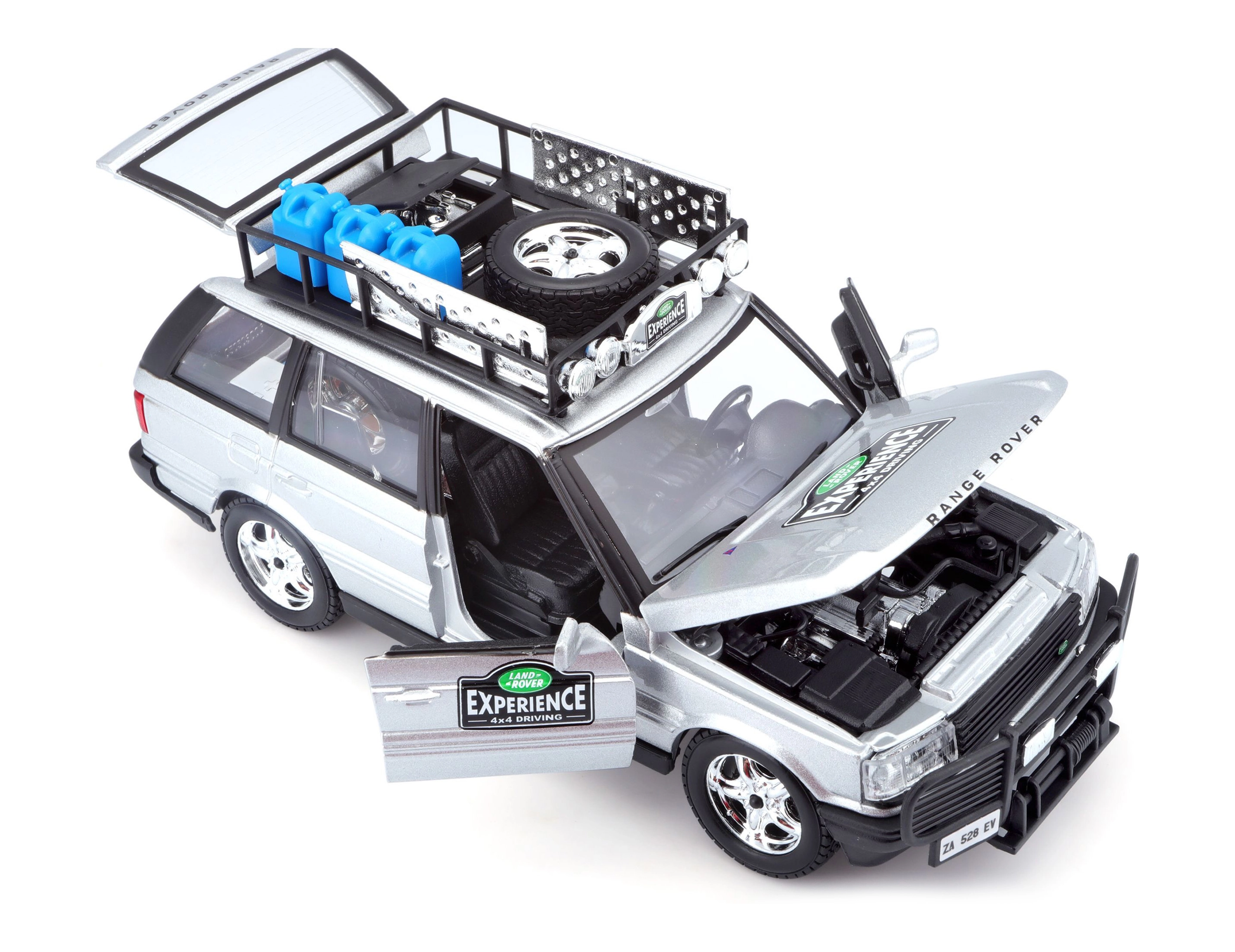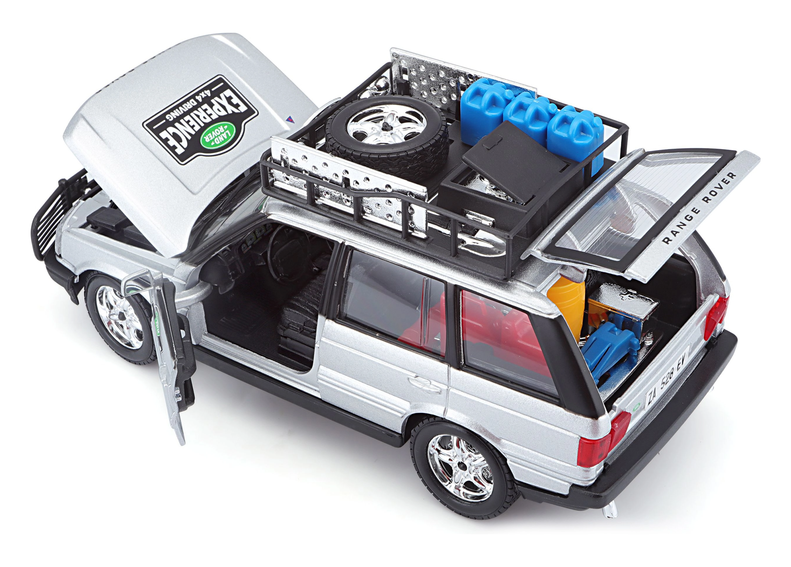 Tento precízne spracovaný model vozidla RANGE ROVER v mierke 1:24 prináša autentické detaily, ktoré potešia každého fanúšika terénnych áut. Strieborná karoséria doplnená o strešný nosič s príslušenstvom, predný ochranný rám a realistické polepy vytvára atraktívny vzhľad na hranie aj vystavenie.