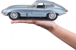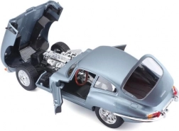 Kovový model auta 1:18 Bburago 18-12044 Jaguar E-type Coupé nielen pre zberateľov. Má otváracie dvere a kapotu, natáčanie kolies volantom je plne funkčné. Farba modelu je strieborno-modrá metalíza.
