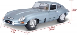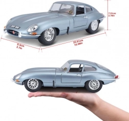Bburago 1:18 Jaguar E Coupé metalická strieborno-modrá
